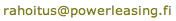 Leasing vaihtovuokraus osamaksu- Nyt parhaat ominaisuudet samassa sopimuksessa - Tee näin: 1. Valitse hankittavat tuotteet itsenäisesti 2. Ota yhteys meihin: 3. Maksa tuotteesi kätevästi kk-erissä Me hoidamme puolestanne kuljetukset, paperityöt ja tarvittaessa asennuksen. Power Networks Oy • Insinöörinkatu 7 • 00880 Helsinki |